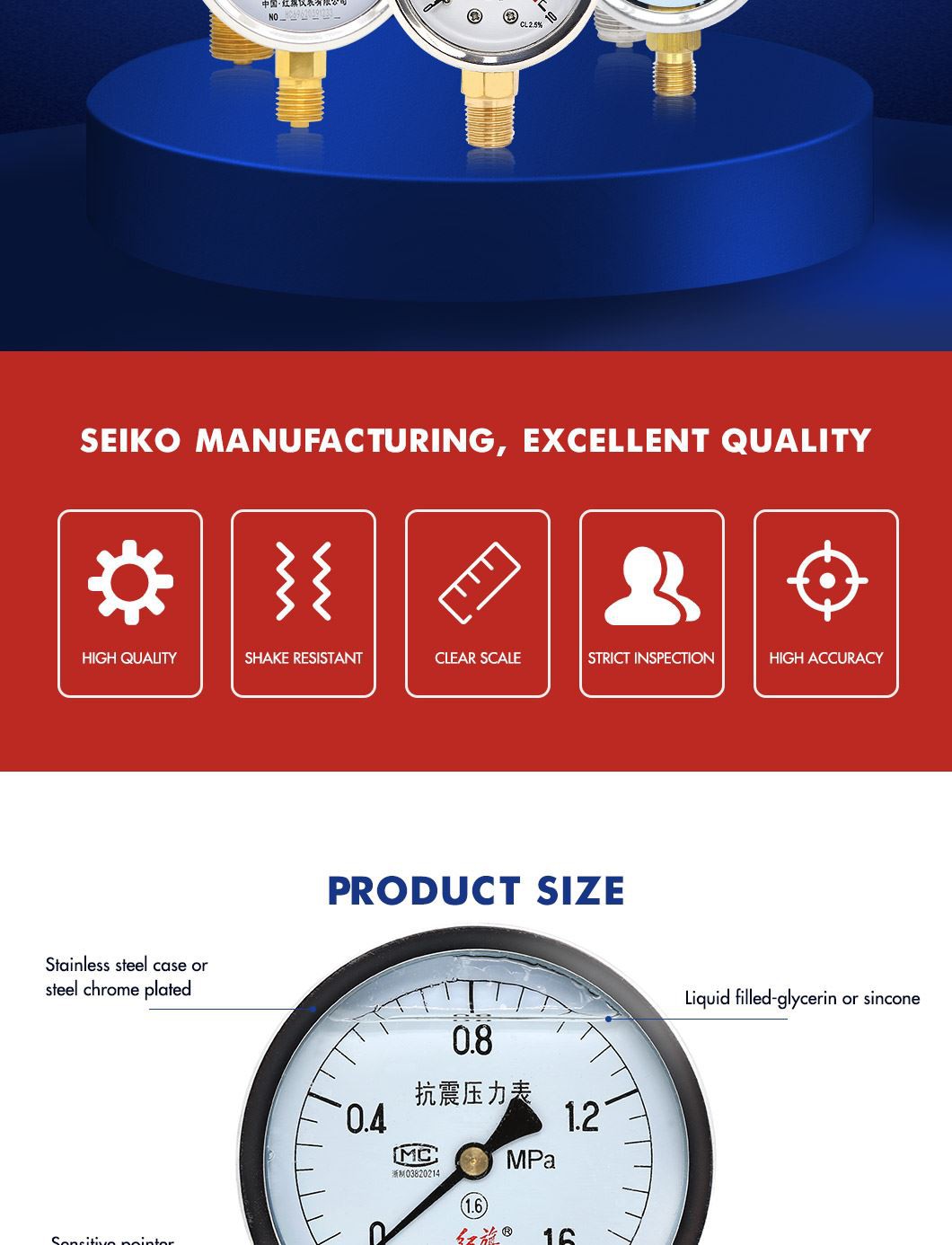 НашитеМанометърса всички100 процента проверени със стандартен производствен процес.